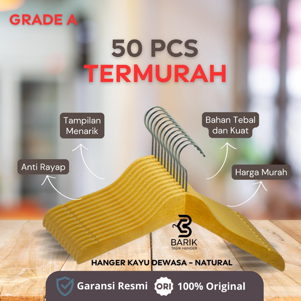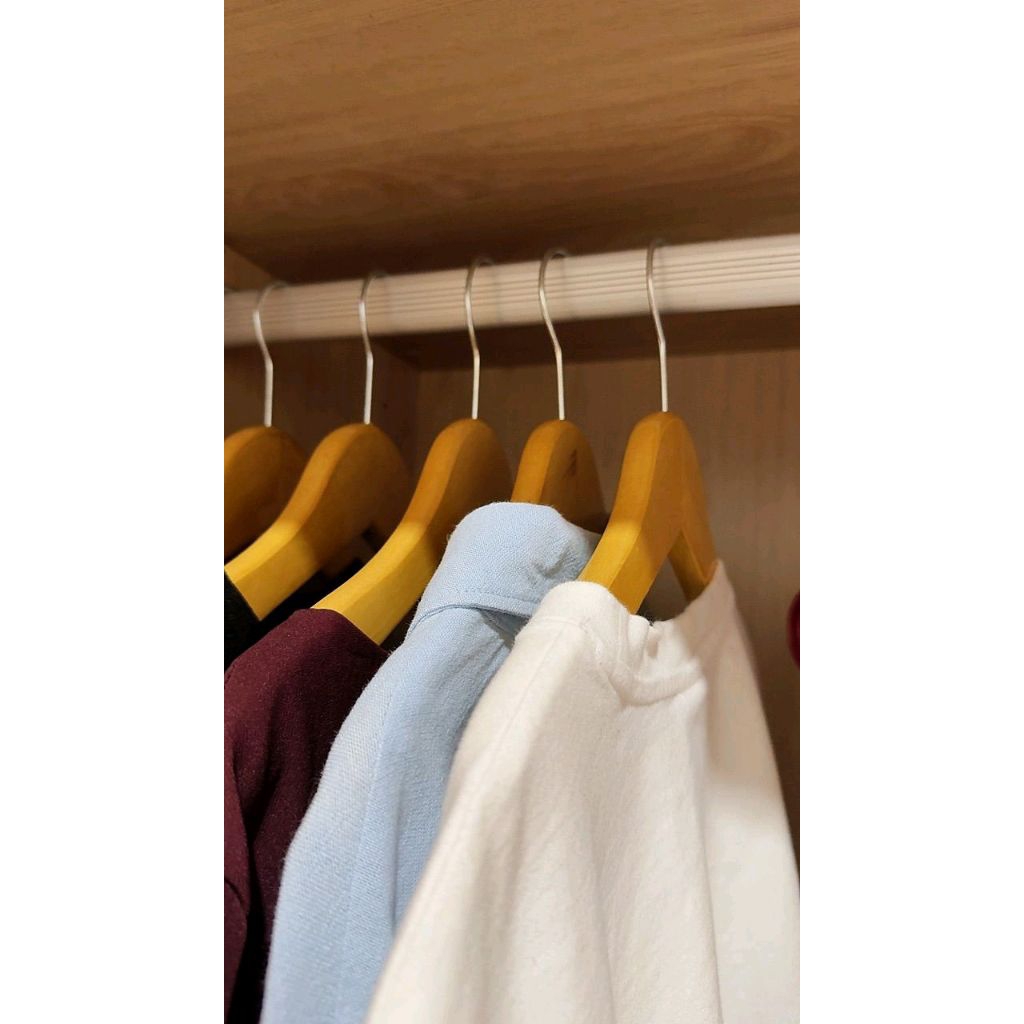 [50 Pcs ] Hanger Gantungan Baju Dewasa Natural Bahan Kayu Tebal Dan Kuat Aesthetic Premium Grade A