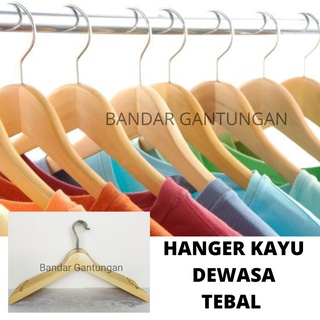 1 Lusin Hanger Kayu Dewasa Natural Super Tebal Wood Hanger Dewasa Hanger Distro Gantungan Baju Kayu Warna Tebal Hanger K