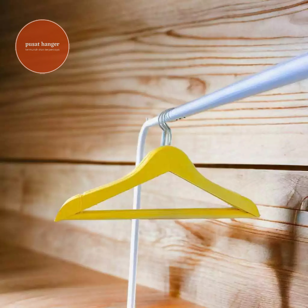 1 Lusin Hanger Kayu Premium + Palang Baju Dewasa Natural