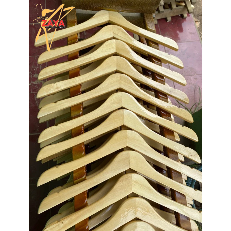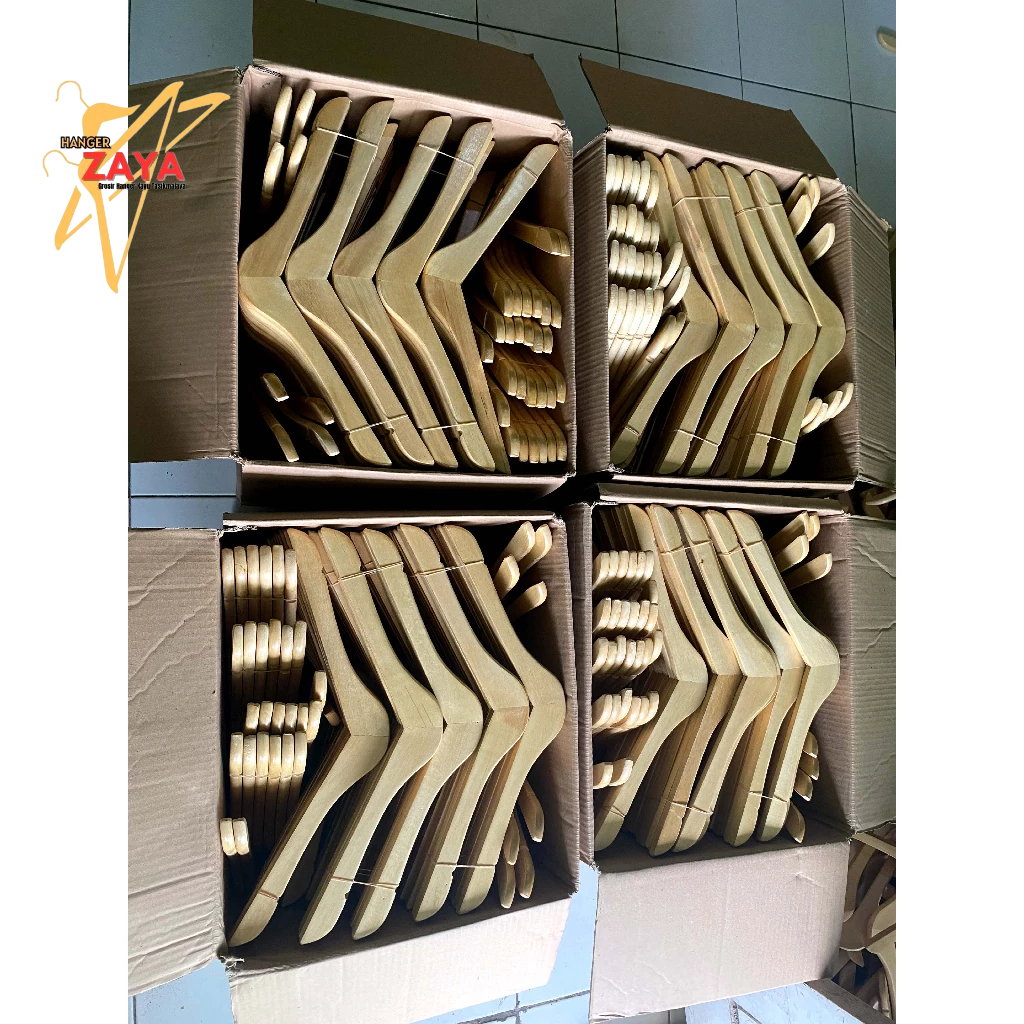 12 Pasang (1 Lusin) Hanger Kayu Natural Baju Dewasa Kualitas Premium