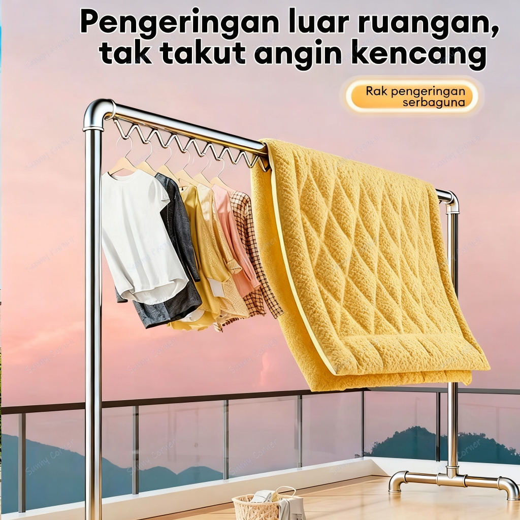 200Cm Jemuran Baju Tabung Baja Jemuran Baju Stainless Single Jemuran Pakaian Minimalis Rak Gantungan Baju Stand Hanger M