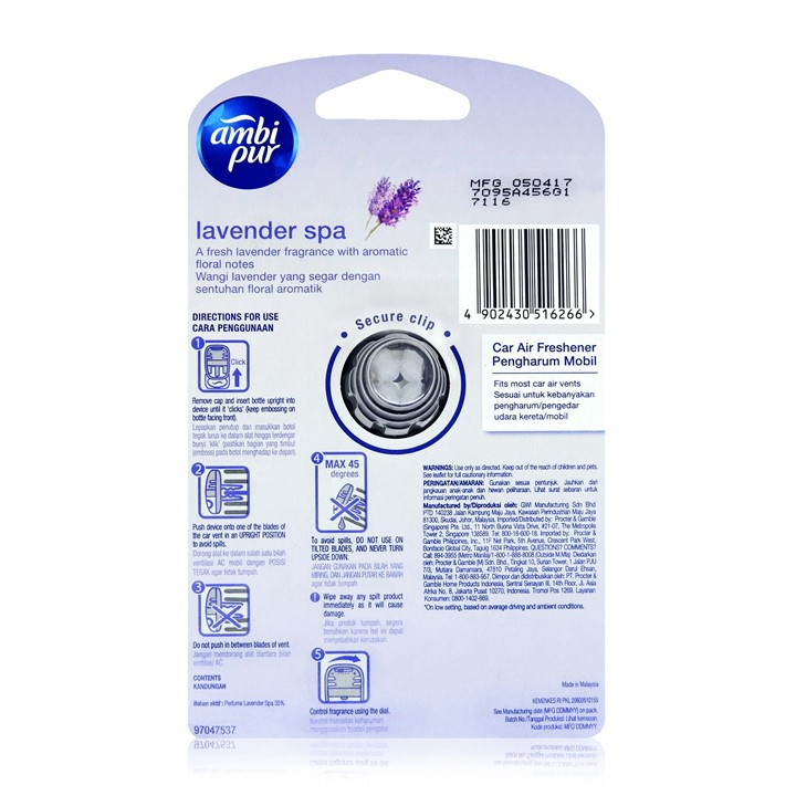 Ambi Pur Pengharum Mobil Lavender Spa Starter Kit Ultra 7,5 ml
