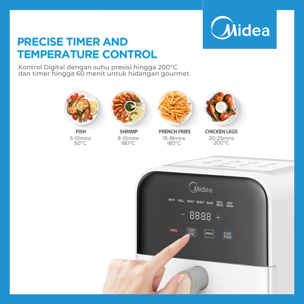 Midea Air Fryer 4L 650W Low Watt MAD40007ADA Penggorengan Tanpa Minyak Digital Touch White