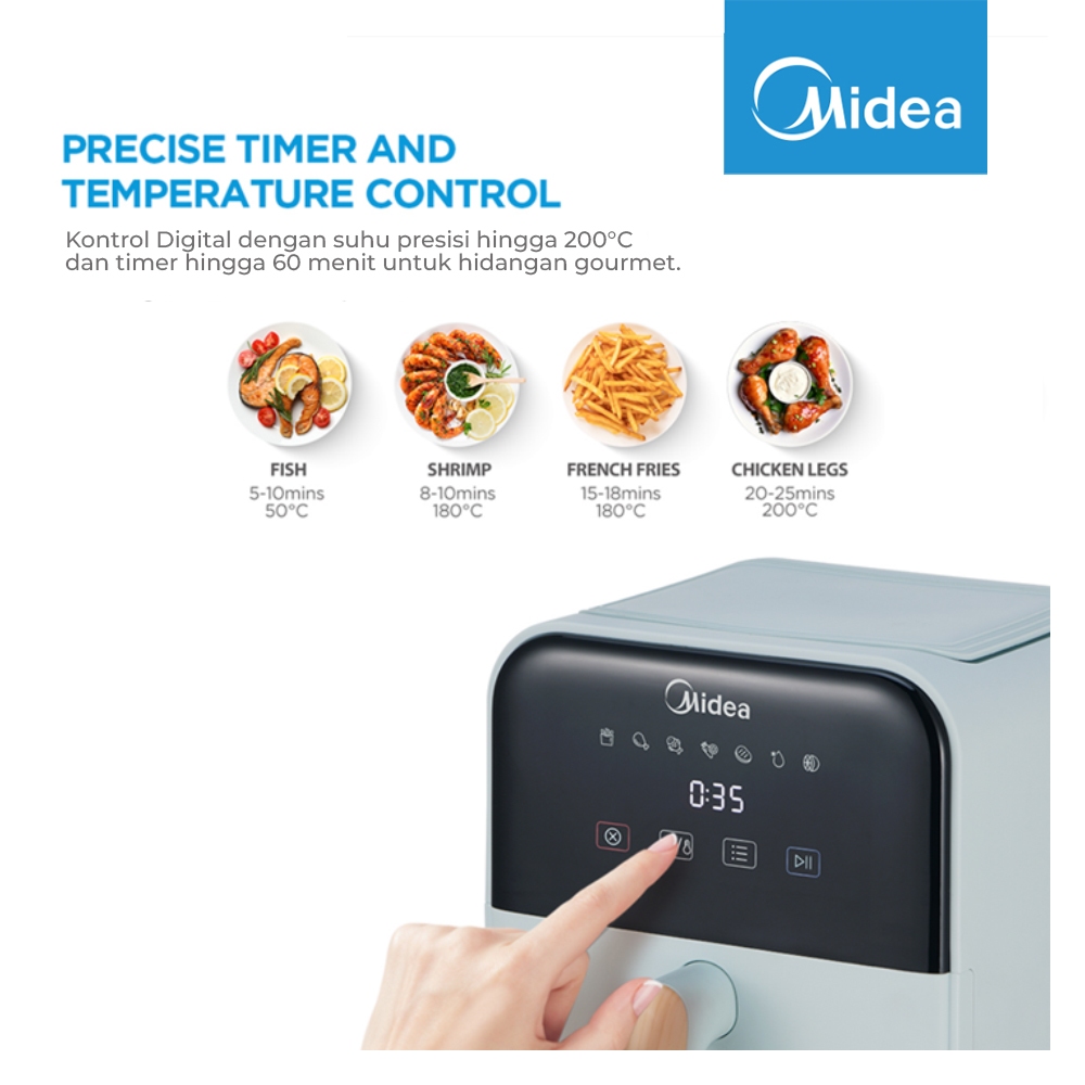 Midea Air Fryer 4L 650W Low Watt MAD40007ADG Penggorengan Tanpa Minyak Digital Touch Blue