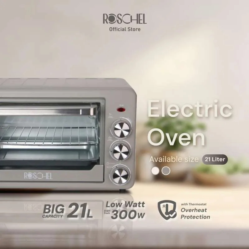 ROSCHEL Electric Oven 21L Aesthetic / Oven Listrik Kapasitas Besar Rendah Watt Tipe ROV210 Estetik 300 Watt Rendah