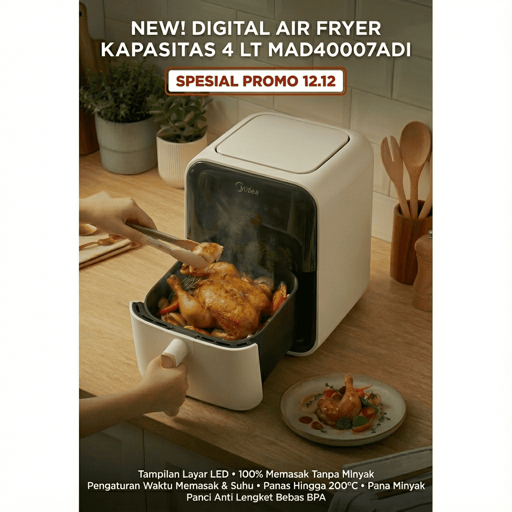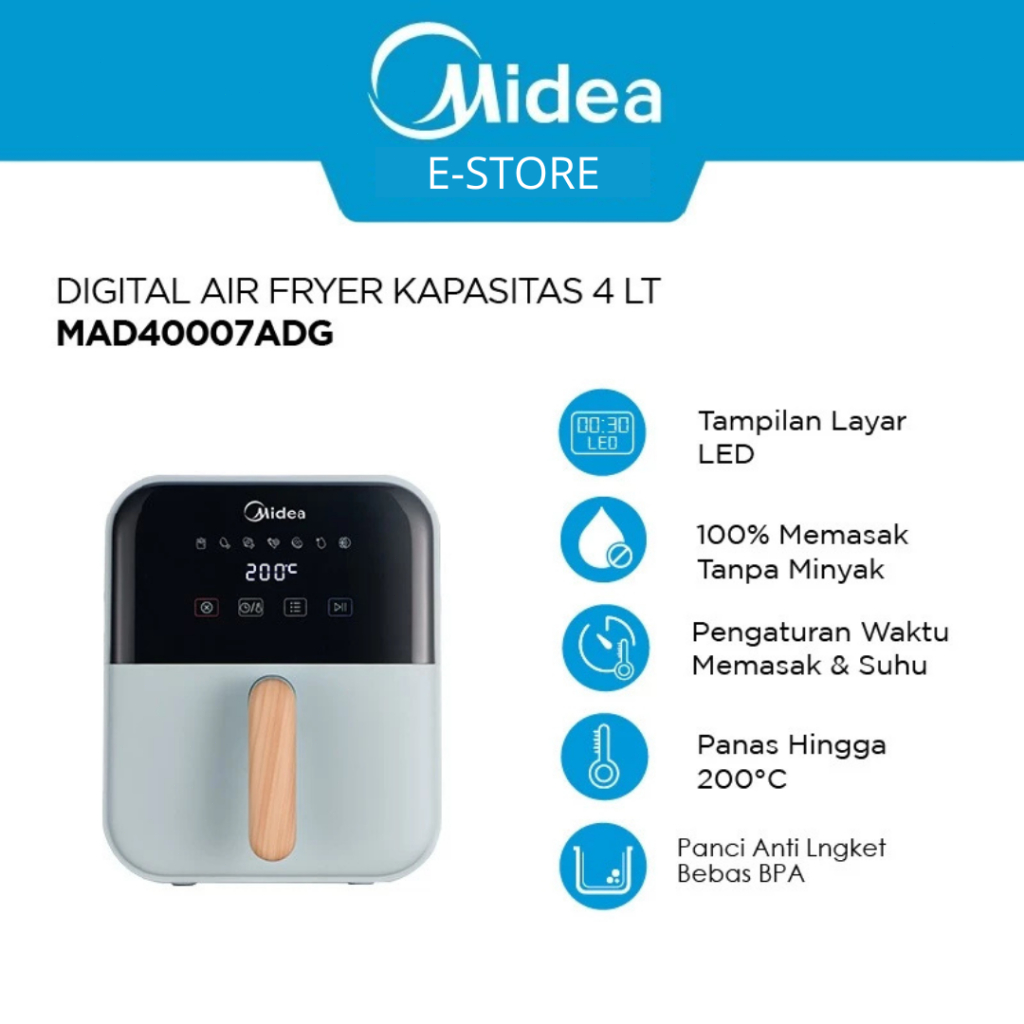 [PROMO GAJIAN] Air Fryer Digital Midea 4L M-MAD40007ADI| 650W Hemat Listrik | Touch Screen