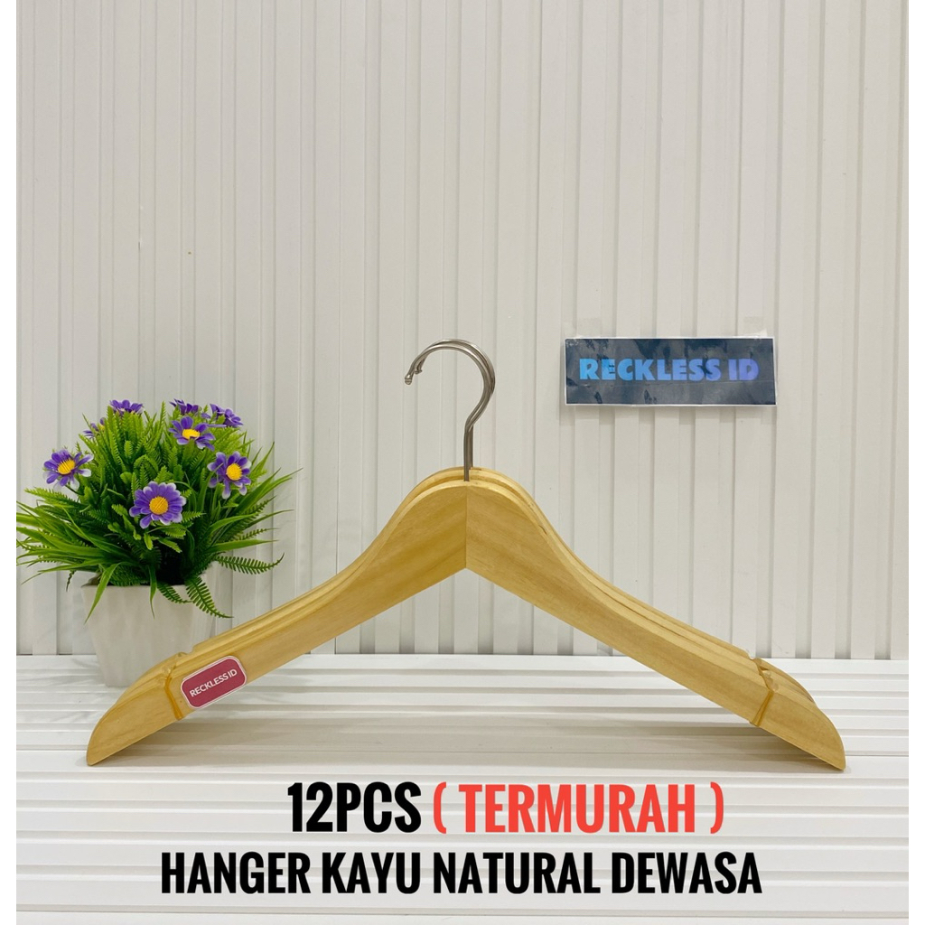 ( 12Pcs / 1 Lusin ) Hanger Kayu Natural Dewasa Kualitas Standar