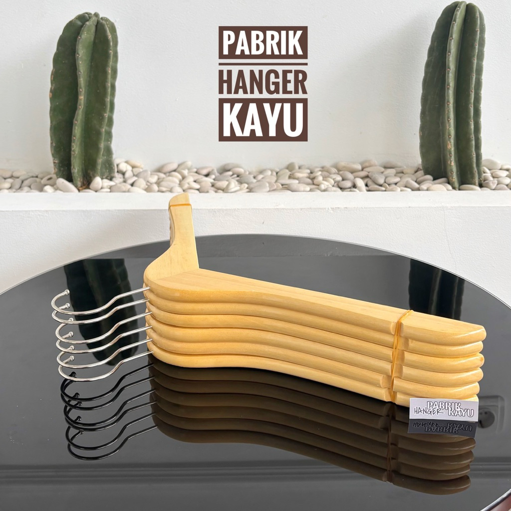 12 Pcs / 1 Lusin Hanger Baju Kayu Natural Kualitas Premium