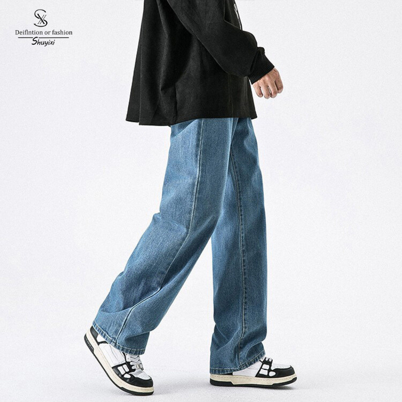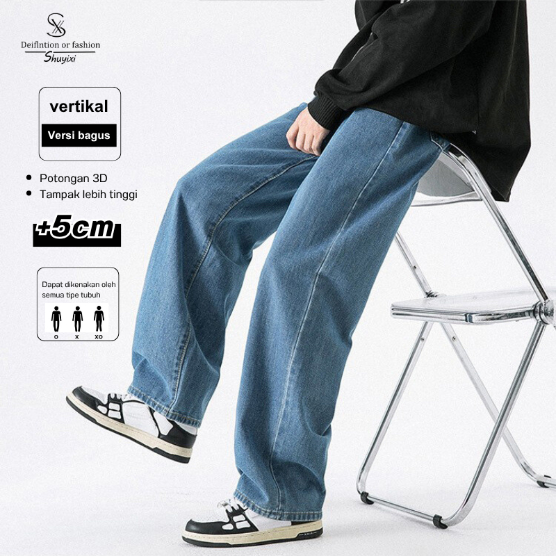 SUYX Celana Jeans Pria Baggy Denim Premium Lurus Longgar Korea Jeans Dasar Sederhana