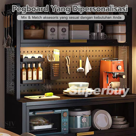 Rak Dapur Lemari Dapur Dengan Pintu Rak Penyimpanan Microwave Oven Rak Multi-Lapisan Lemari Piring Lantai Berdiri Rak