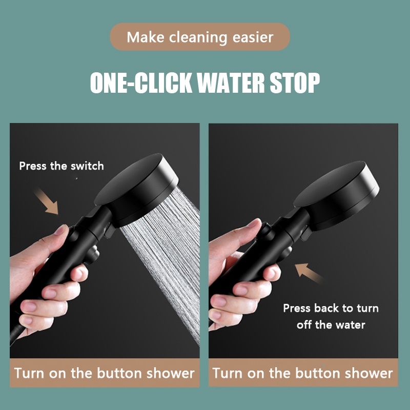 3In 1 Kepala Shower Set Mandi Hitam Premium Shower Head Set 5 Mode Adjustable Shower Dengan Selang Portable Kamar Mandi