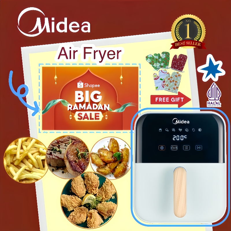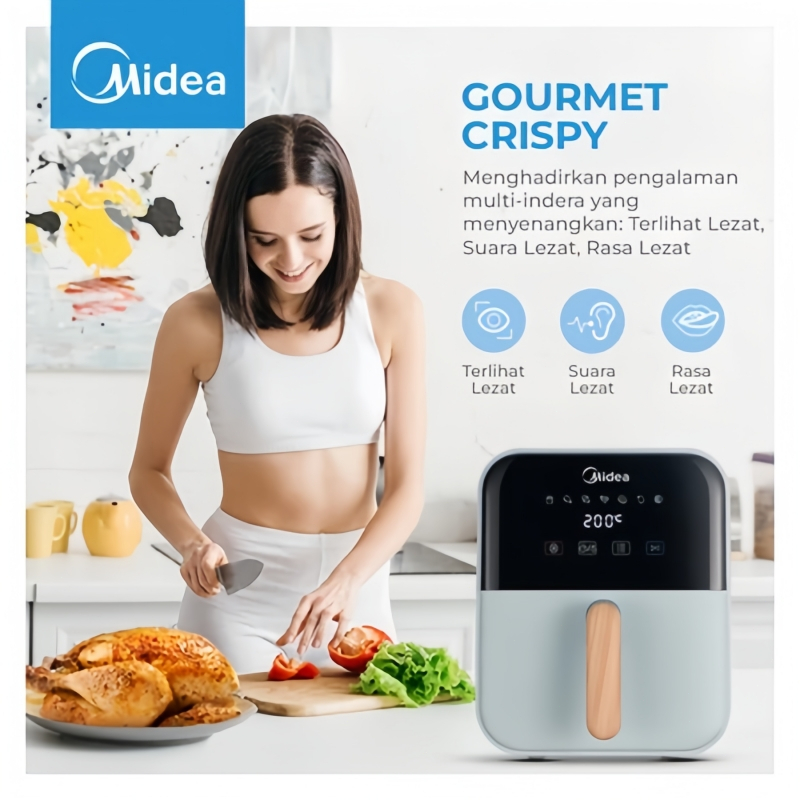 Free Gift Midea Airfryer Low Watt 650W 4L Wood Handle Kayu Digital Touch Screen Frayer MAD40007ADG