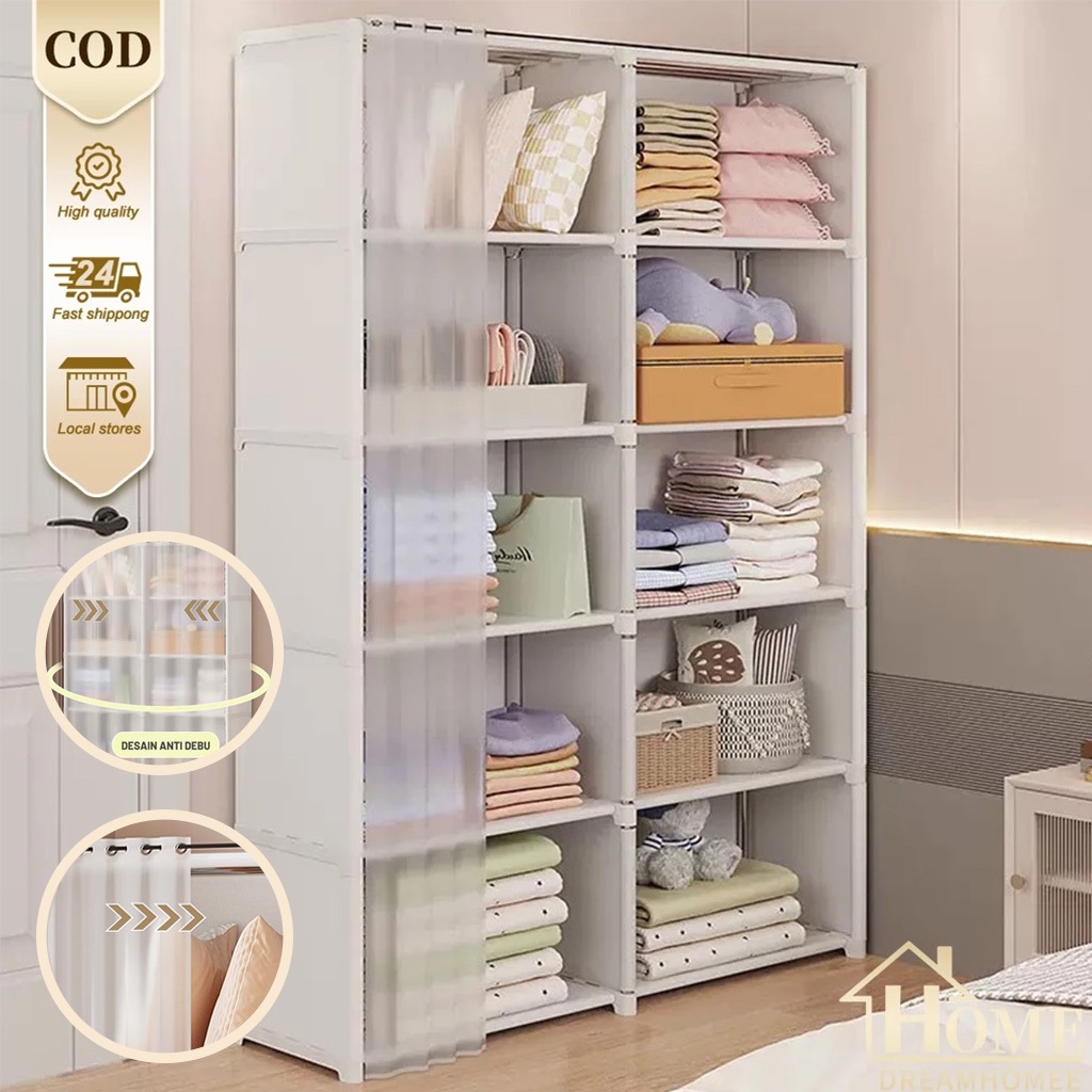 Lemari Pakaian Sederhana Storage Rack Wardrobe Dengan Tirai Wardrobe Portable Rak Serbaguna Baju Lemari Penyimpanan Taha