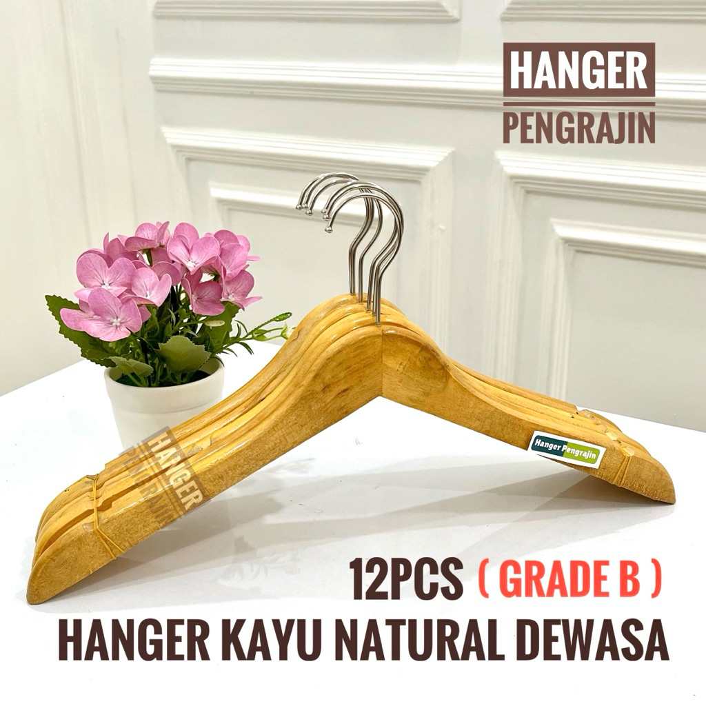 Hanger Baju Kayu / Gantungan Baju Kayu Natural & Kepala Lurus Grade B Rijek ( 12Pcs / 1 Lusin )