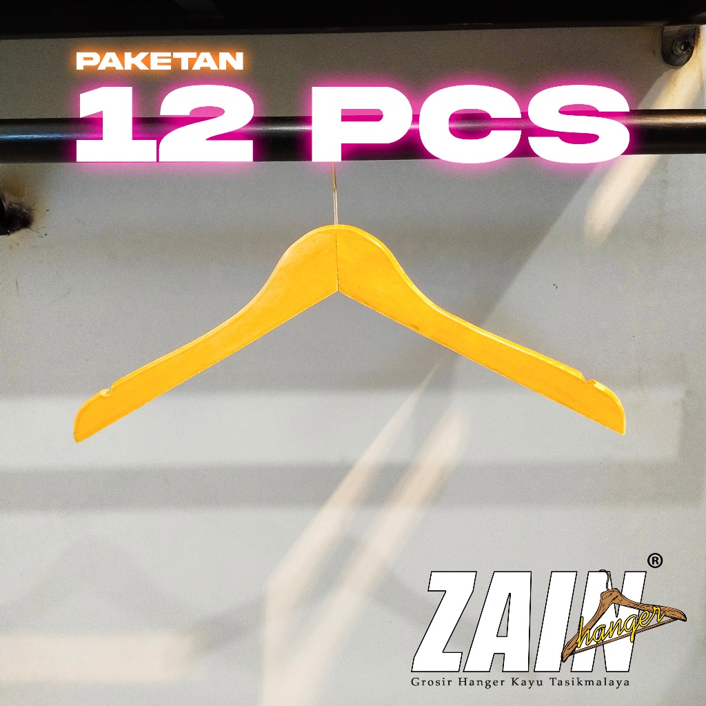 12 Pcs / 1 Lusin Hanger Kayu Dewasa - Natural Tanpa Palang - Premium Grade A