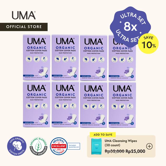 UMA Maxi Protection Pads 42cm Ultra (Pack of 8) | Pembalut Maxi Organik - 8x Ultimate (8s) No add ons