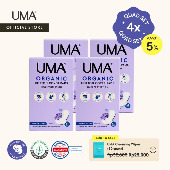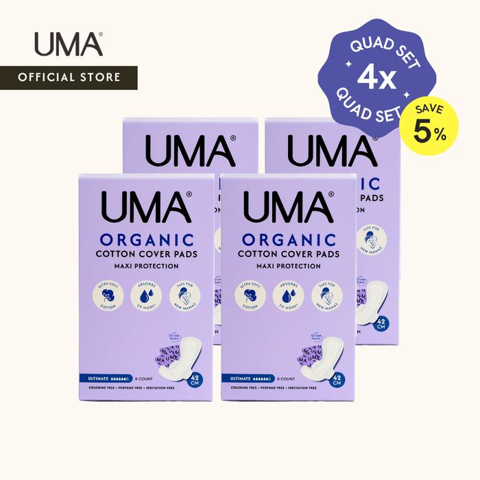 UMA Maxi Protection Pads 42cm Quad (Pack of 4) | Pembalut Maxi Organik - 4x Ultimate (8s) No add ons