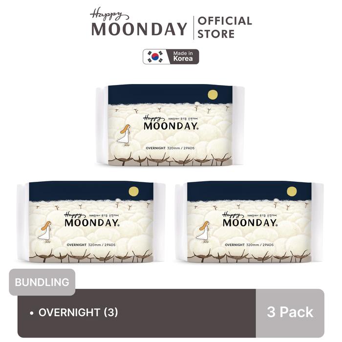 Happy Moonday Pembalut Overnight 3 Packs (Isi 6 Pads)