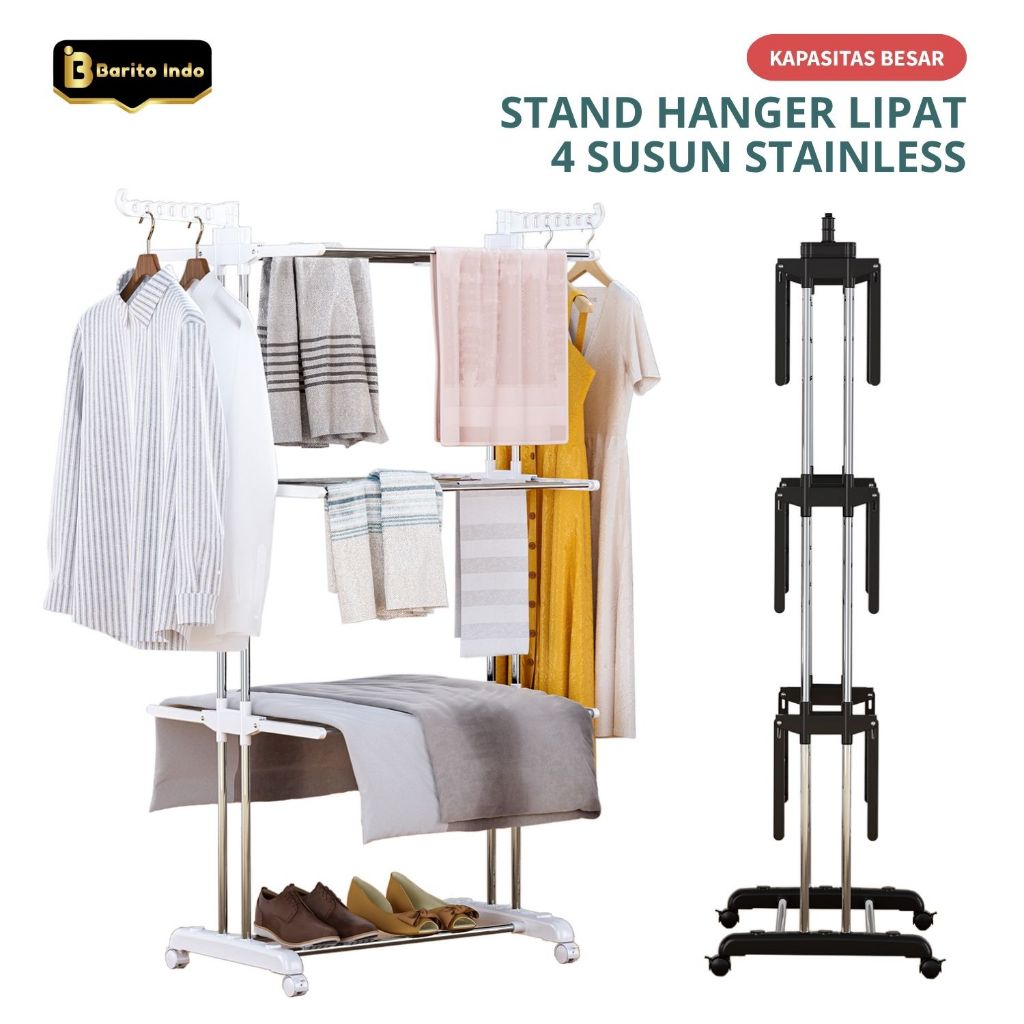 Baritoindo Rak Jemuran Baju Lipat Roda 4 Susun Stainless Steel Anti Karat Tahan Beban 40 Kg - B03A