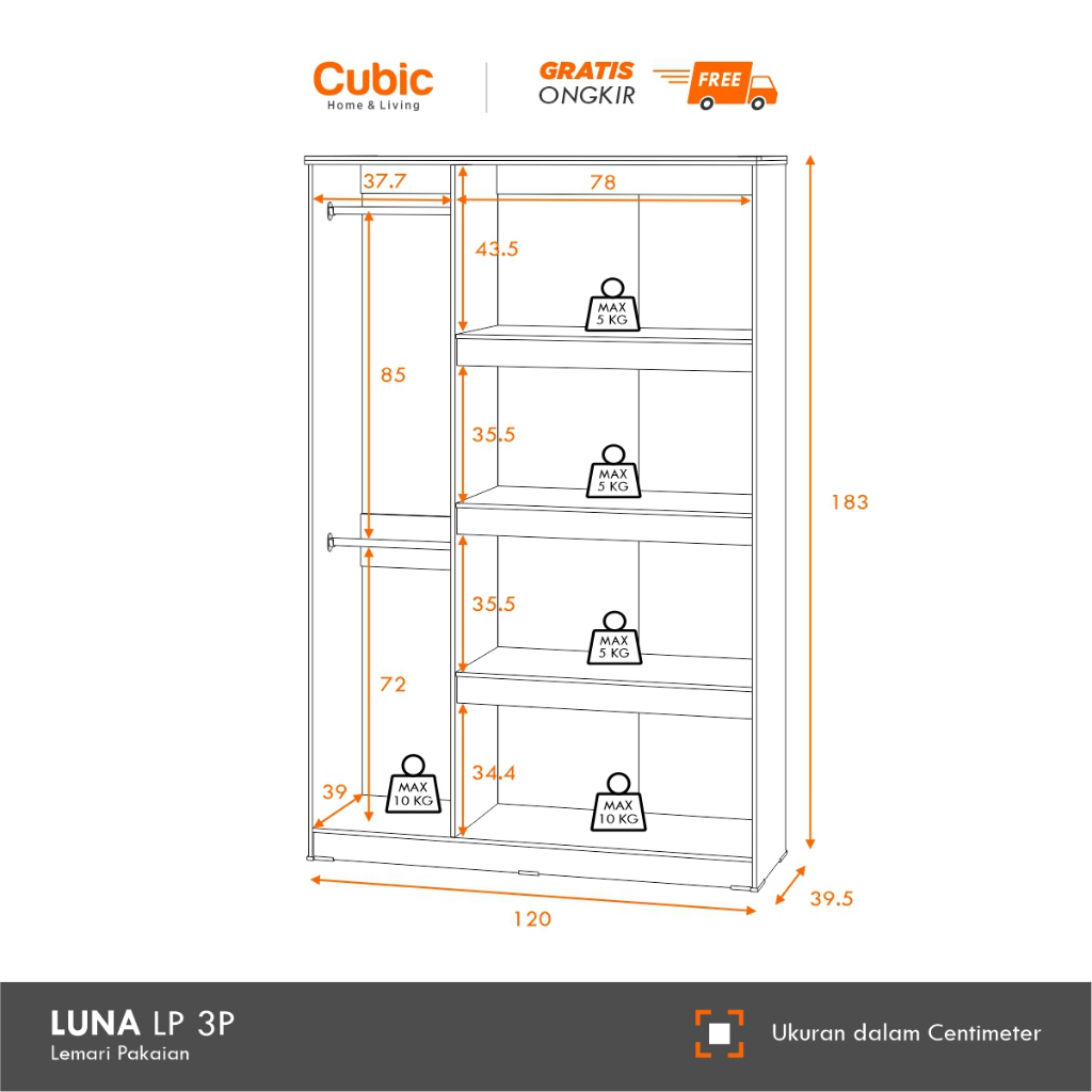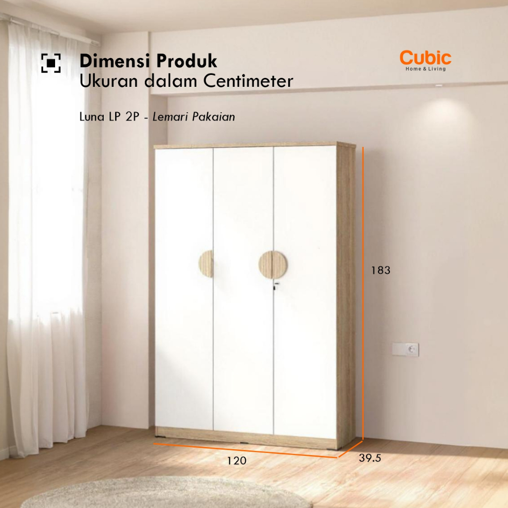 Cubic Lemari Pakaian Minimalis / Lemari Baju 3 Pintu / Luna Lp 3P - Hm