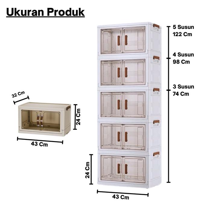 LEMARI LIPAT PLASTIK 3, 4 DAN 5 SUSUN LACI PENYIMPANAN SET RODA 180 DERAJAT RAK KABINET MINI SERBAGUNA RAK DAPUR STORAGE BOX LEMARI PAKAIAN ANAK DAN BABY - 4 SUSUN MAGNET