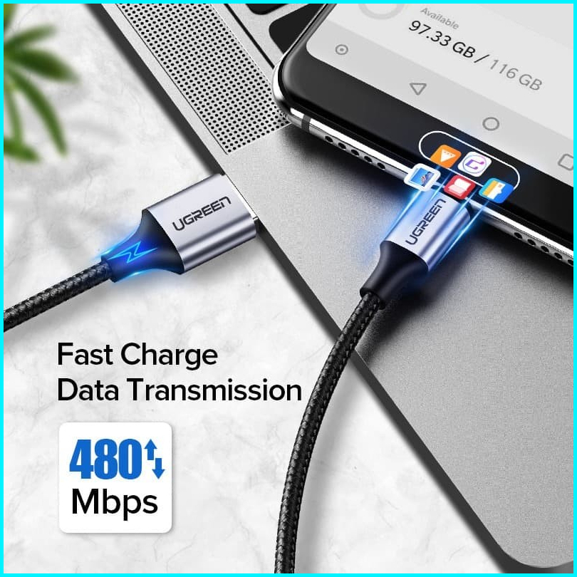 Ugreen 60126 1m 2m 3m Kabel Usb Type C Data Cable Fast Charging Charger