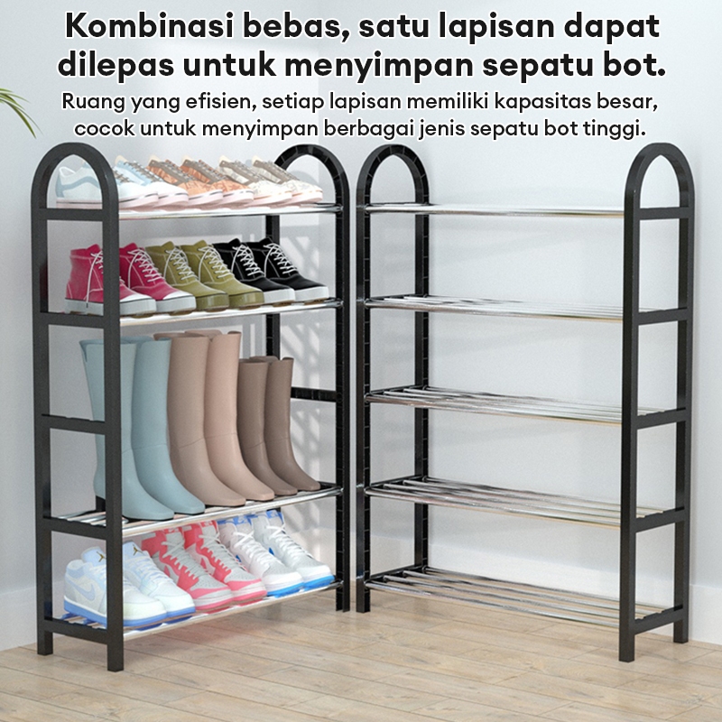 Bahan Plastik & Stainless Rak Sepatu Sandal 5/4/3 Tingkat Tempat Sepatu Estetik 75X20X75Cm
