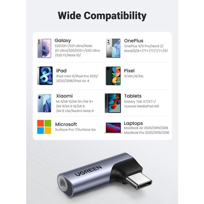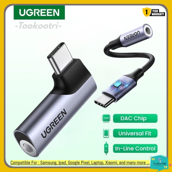UGREEN AUDIO CONVERTER ADAPTER DAC CHIP TYPE C TO AUX JACK 3.5MM EARPHONE HEADSET UNTUK SAMSUNG PIXEL IPAD LAPTOP - BRAIDED