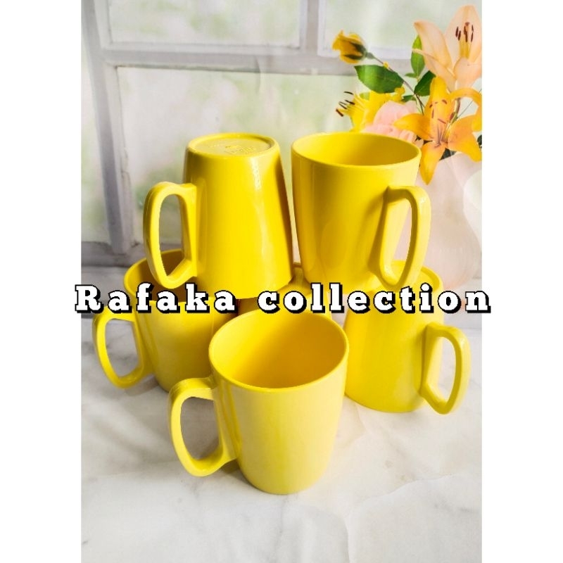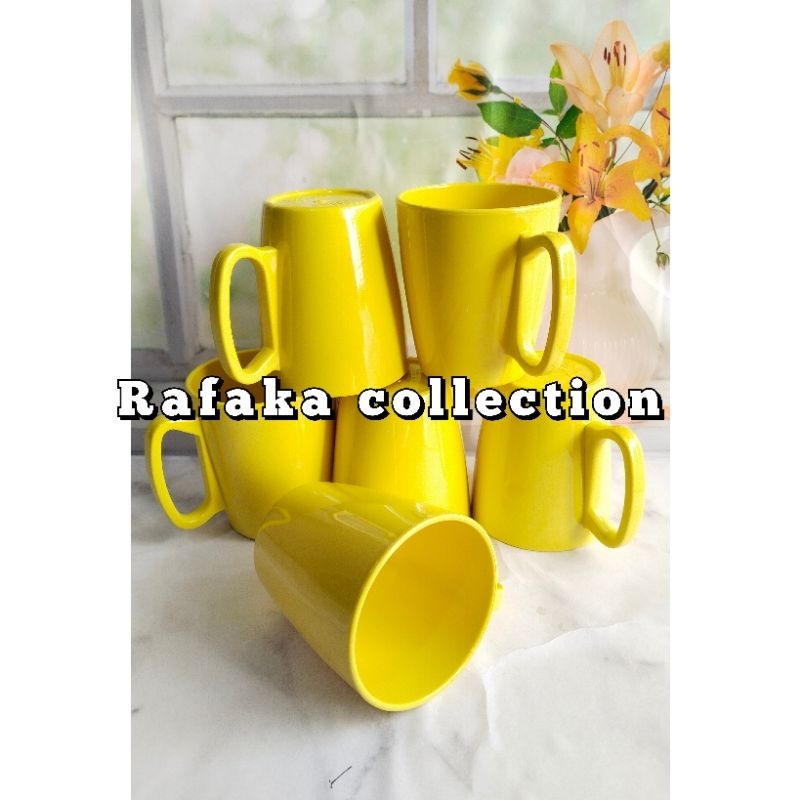 Baru Paket 12. PCS Cangkir Gagang Kuning Melamin 350ML