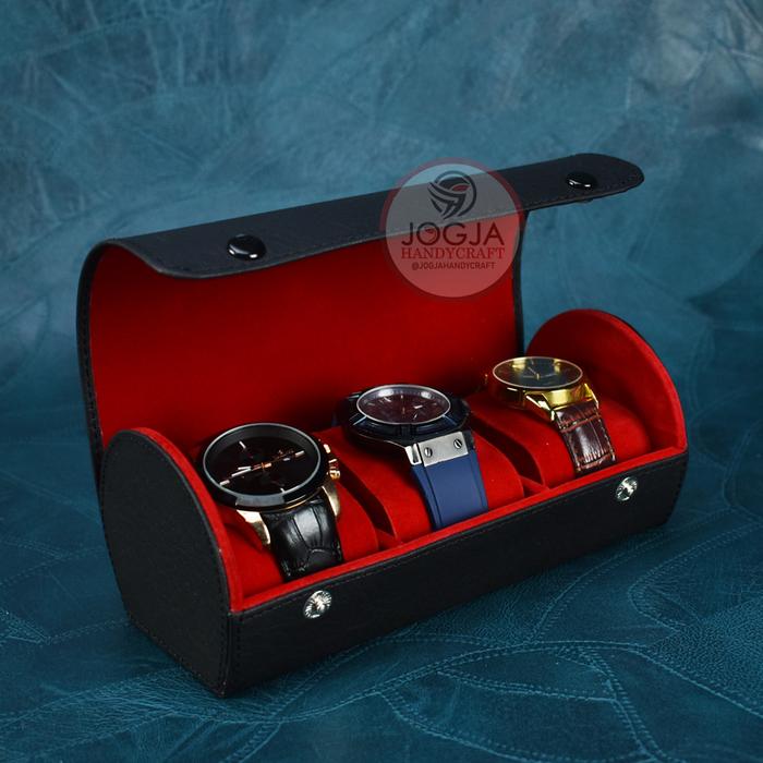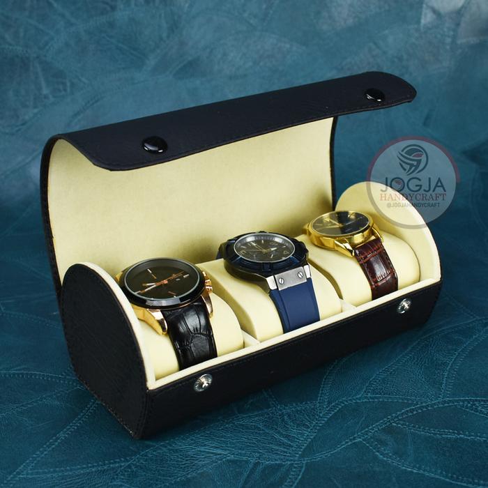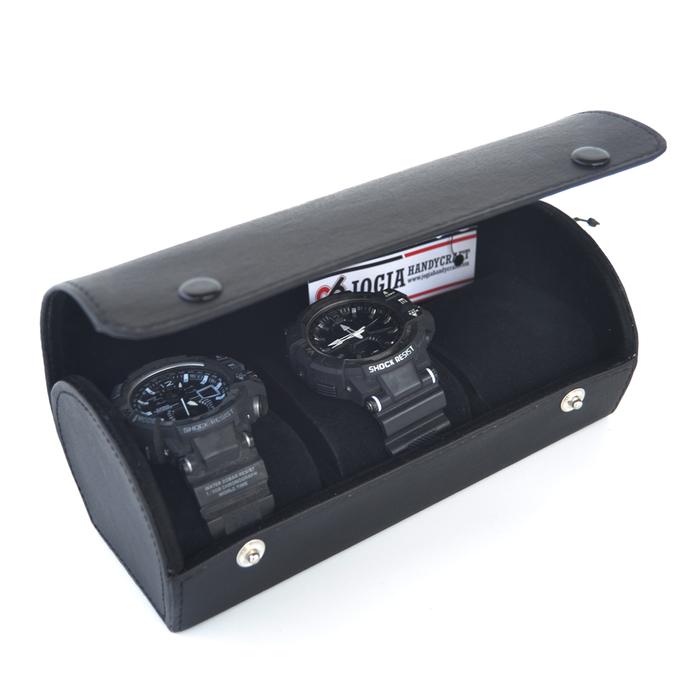 TRAVELLER WATCH CASE TUBE / TEMPAT JAM TANGAN / BOX JAM TANGAN TABUNG - BLACK FULL