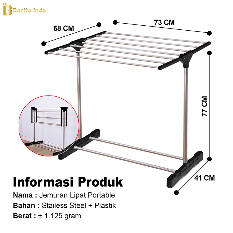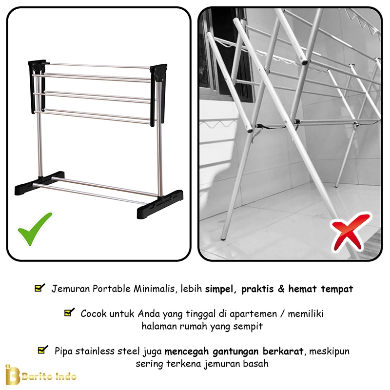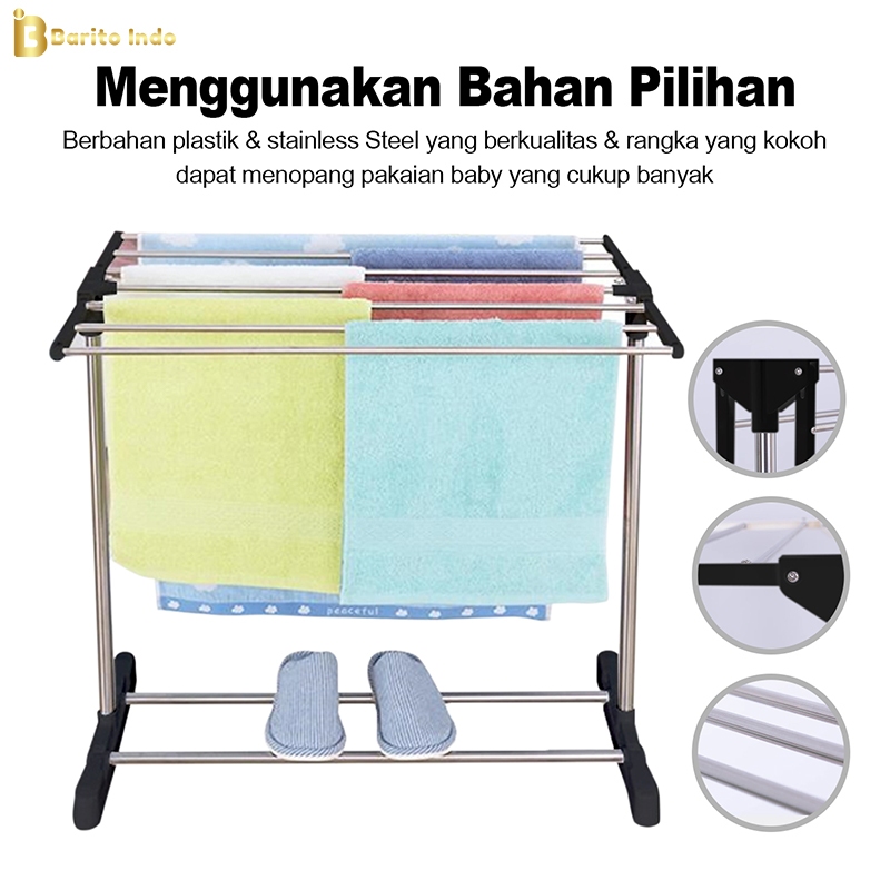 Baritoindo Rak Jemuran Lipat Handuk Pakaian Sepatu Stainlees/Gantungan Pengering Baju Bayi - B01B