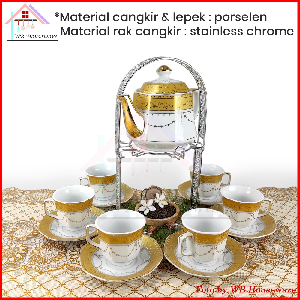 VICENZA perangkat Tea set porcelain motif padi CA78 / cangkit set + teko / gelas teh kopi + tatakan