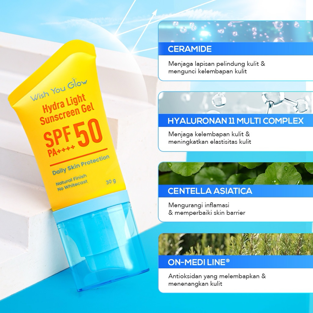 WishYouGlow - Hydra Light Sunscreen Gel SPF 50 PA++++ Oil Control Cepat Menyerap Ringan