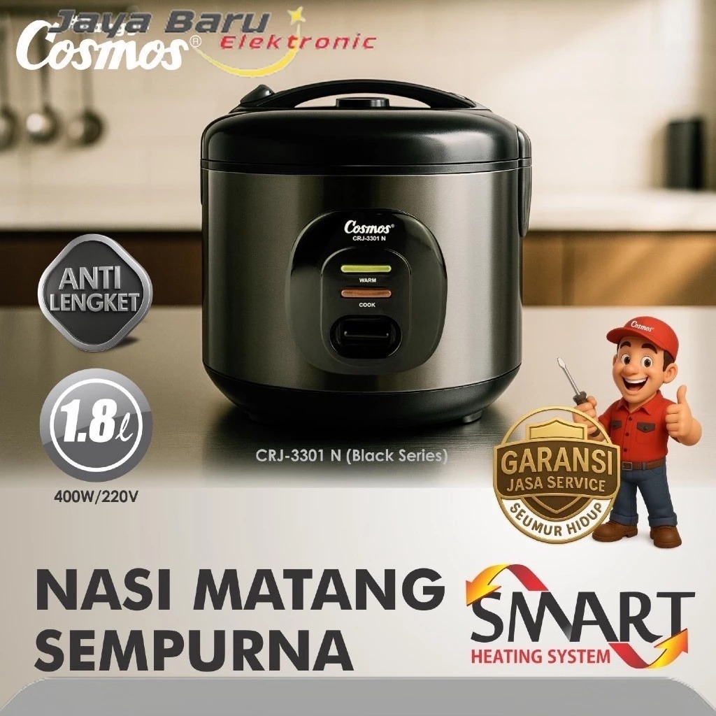 PROMO MURAH COSMOS Rice Cooker Non Stick CRJ-3301 NB - 1.8L ORIGINAL BERGARANSI mejikom miyako 2 liter