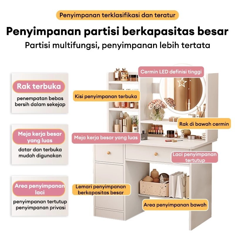 Damaindah Meja Rias Set Kursi Pita / Meja Rias Lampu Led/Meja Rias Aesthetic/Minimalis/Mini/Modern/Nordic/Murah