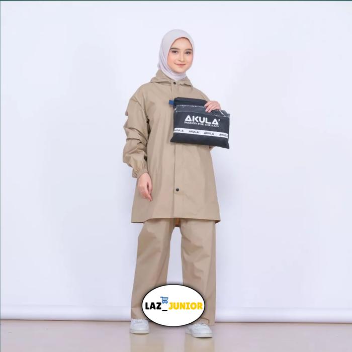 AKULA Jas Hujan Original Pria Wanita Dewasa bahan pvc 25 untuk musim hujan - MOCCA XL