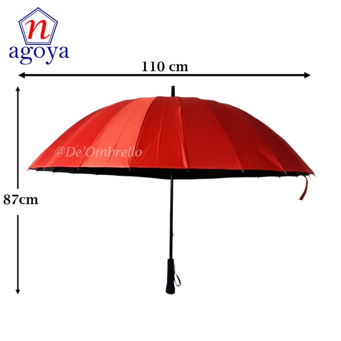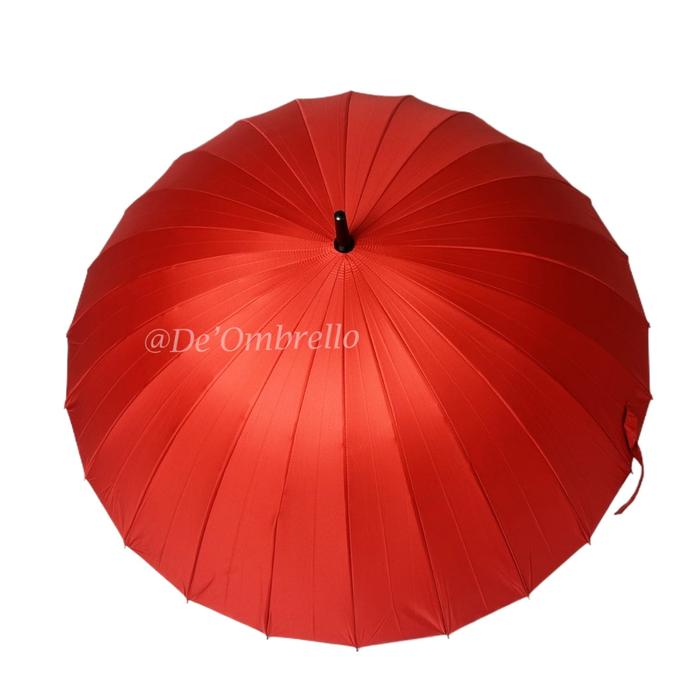 (105)Payung Golf Panjang 24 Jari Rangka Fiber Polos Lapis Hitam Anti UV/Golf Polos Premium Quality - Merah