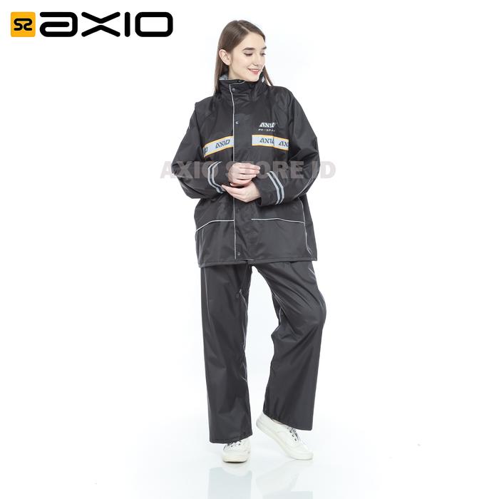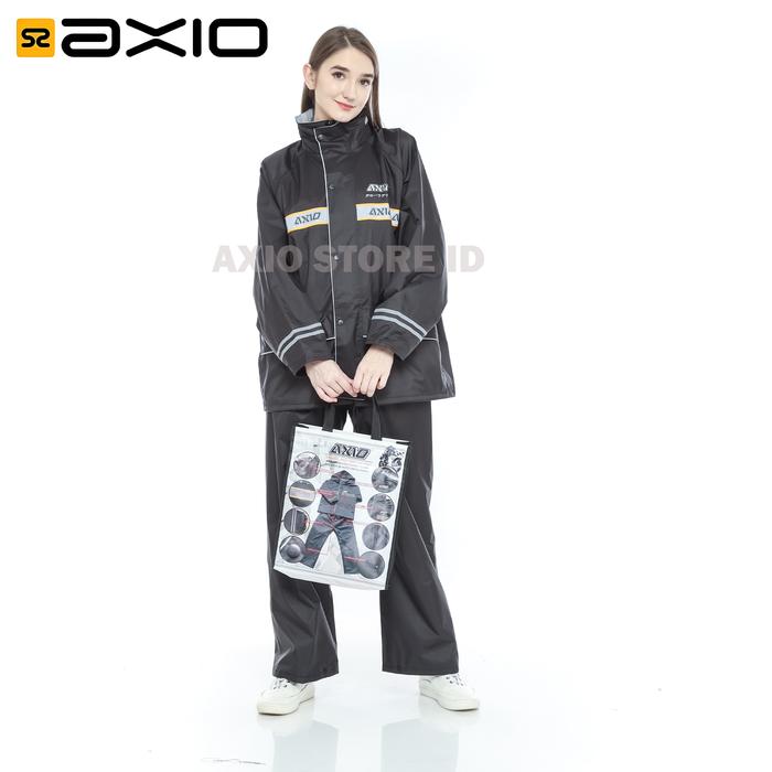 Jas Hujan Axio Wanita Hitam Waterproof Silver Series dengan Scotlight Silver Tulisan Axio - M