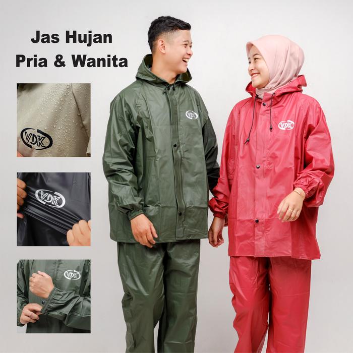 Jas Hujan SETELAN Raincoat Dewasa Pria dan Wanita Original Setelan Baju Celana Waterproof Aesthetic PVC 025 - Cream L