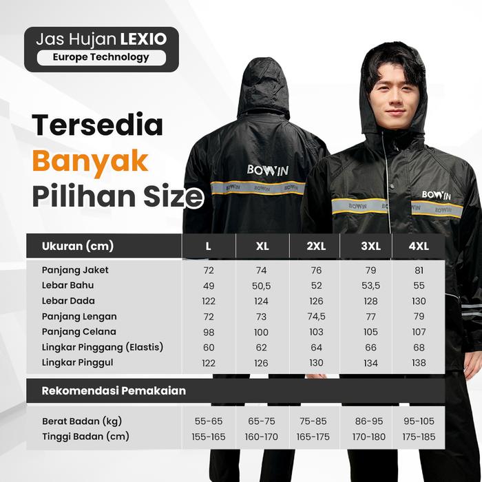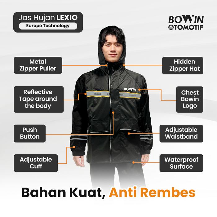 Bowin Jas Hujan Lexio Euro Technology - Original Garansi Anti Bocor Anti Rembes & Bahan Tebal Kuat - LEXIO HITAM Size L