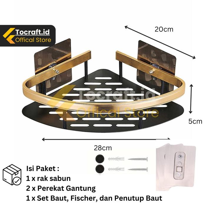 TCID Rak Sudut Toilet Tempat Sabun Tempel Dinding Kamar Mandi Hitam - Hitam Emas A