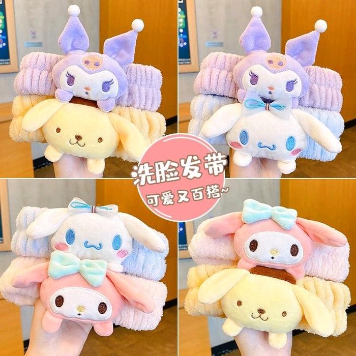 Bando Sanrio Ban- Handuk Boneka Cinnamoroll Melody Kuromi Ikat Rambut Kepala Lotso Bear Pompurin Headbands - Kuromi