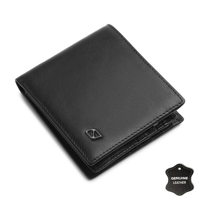 Navy Club Maghann Dompet Pria Lipat Dompet Kulit Asli Free Box id kartu Uang - Black