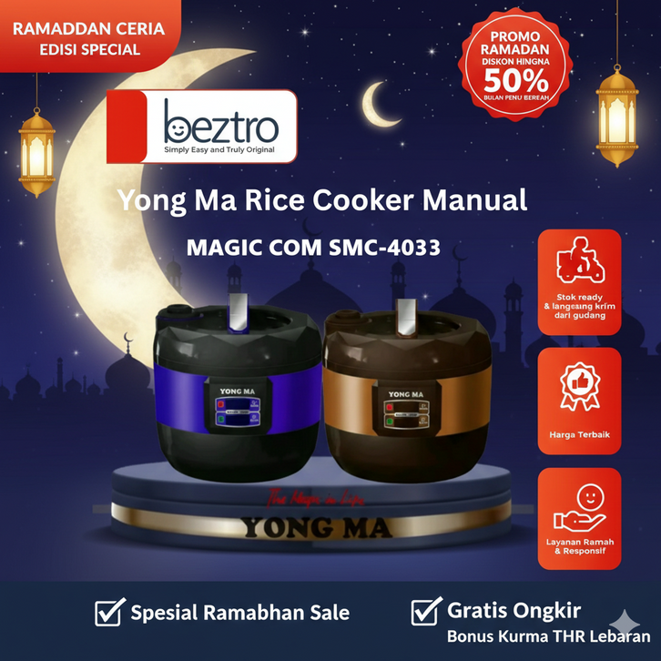 MEGICOME RICE COOKER YONG MA MAGIC COM SMC 4033 2.5 LITER GOLD IRON MULTI FUNGSI SMC4033 ORIGINAL ANTI LENGKET