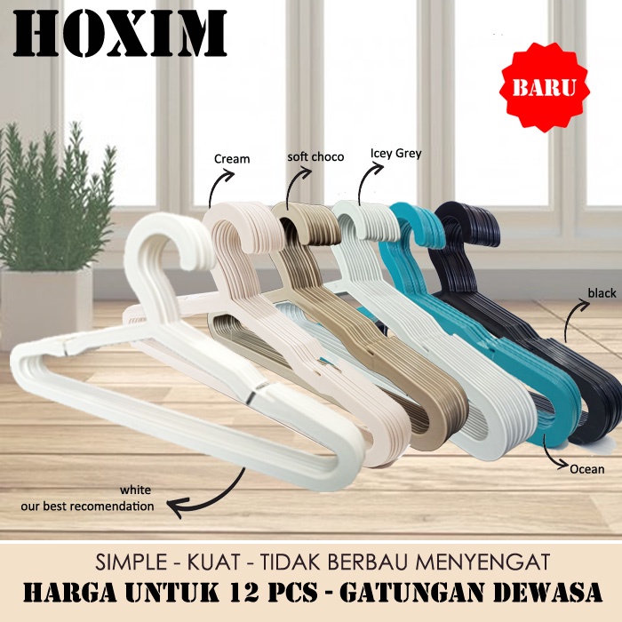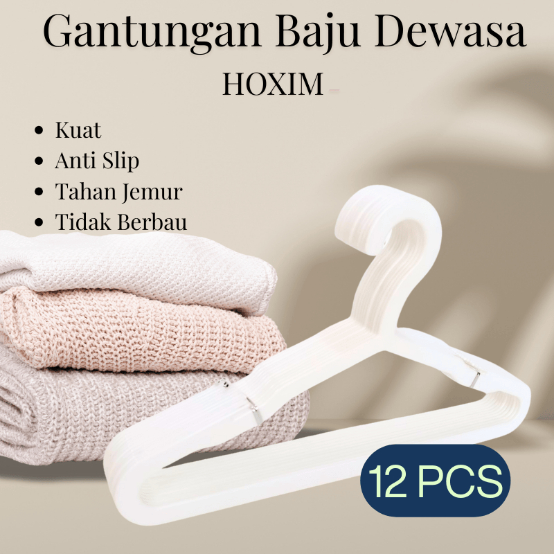 Gantungan Baju Dewasa 41.5Cm Tebal Kuat Tahan Berat Premium | 12 Pcs | [Hoxim]