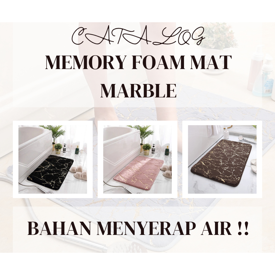 Ghd Memory Foam Mat Marble / Keset Kaki Premium Anti Slip Rumah Dapur Pintu Kamar Mandi Halus Tebal