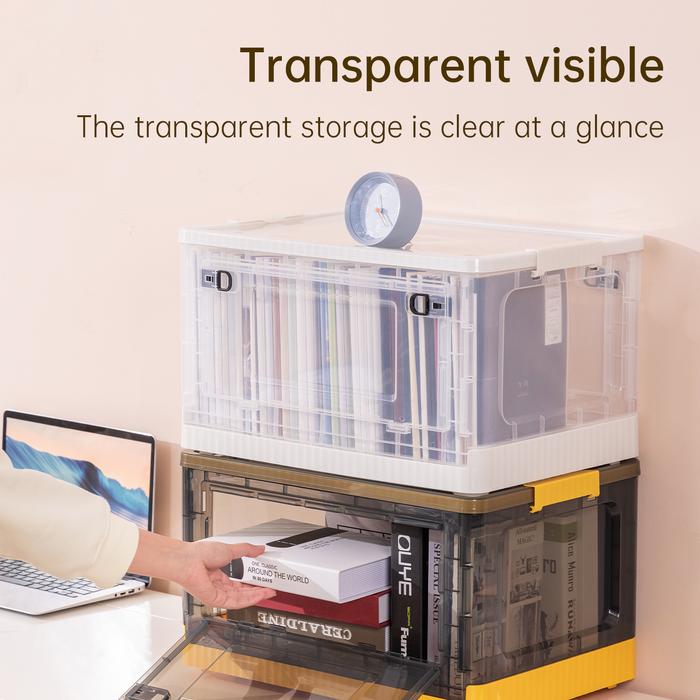 VUSIGN FOLDABLE STORAGE BOX PLASTIK LIPAT TRANSPARAN BERODA VS48X - 40X30X24.5 CM, PUTIH