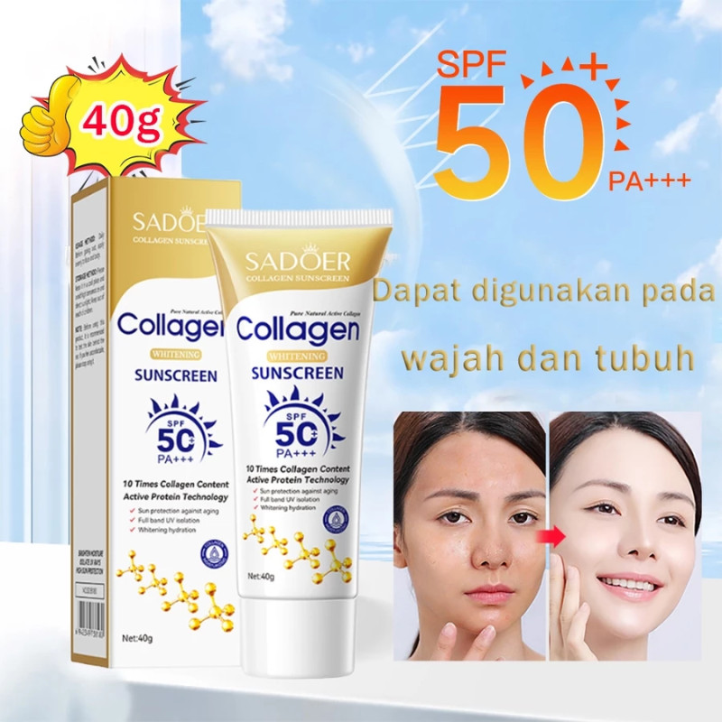 Collagen Sunscreen Cream SPF 50+ PA+++ Glowing Up Sunscreen Lotion Whitening Sunblock Cream Wajah Dan Badan Sunscreen Su