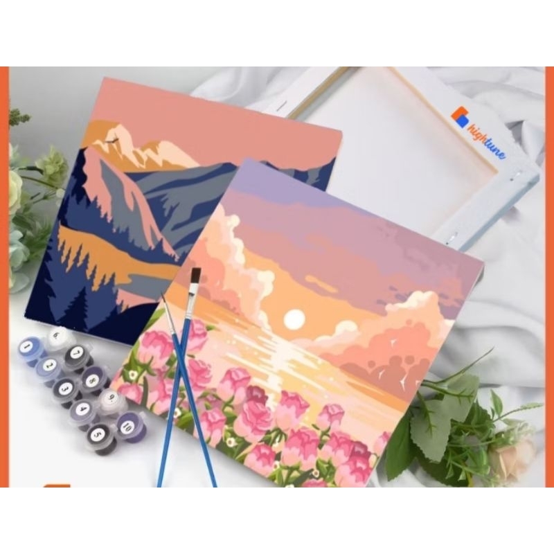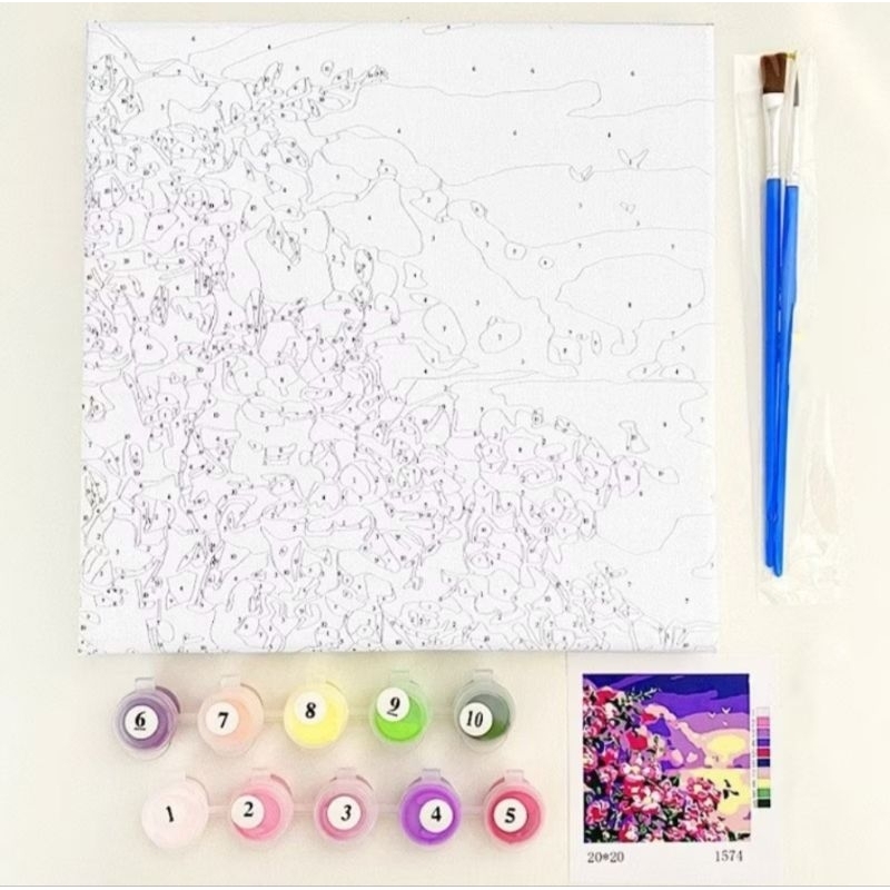 LUKISAN CANVAS KANVAS(set lengkap dengan kuas dan cat) PAINT BY NUMBER 20cmx20cm DIY DIGITAL PAINTING KIT WITH CANVAS LARIS