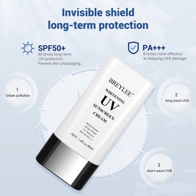 BREYLEE WHITENING UV SUNSCREEN CREAM VARIAN - Krim Tabir Surya SPF 50++ Pelindung Wajah dari Sinar Matahari , Anti-Aging